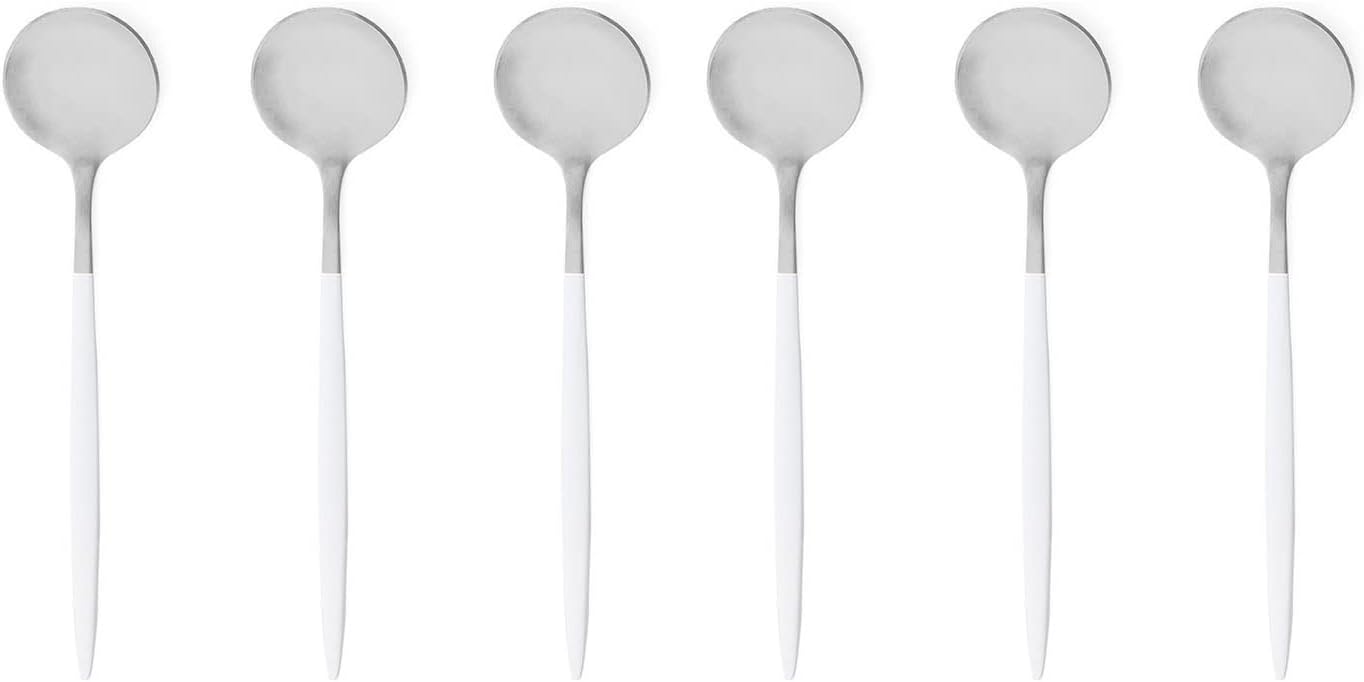Features: Color: Matte Silver White Handle Healthy Material: Made of high quality stainless steel and won't rust, resist corrosion. Dishwasher Safe: Easily clean up in the dishwasher, and last for long use indefinitely. Size: dinner knife 22cm/40g dessert knife 19.6cm/38g dinner fork 21.5cm/30g dessert fork 18.5cm/20g cake fork 13.5cm/10g dinner spoon 21cm/40g dessert spoon 18.5cm/30g teaspoon 13cm/10g long handle spoon 20cm/20g Warm Tip: 1. Please wash the flatware set with warm soapy water before first using to wash off any residue left from the manufacturing process. 2. With soft detergent, dry after washing for their durability and your health. Thank you for choosing Gugrida. Enjoy leisure time in fashion!