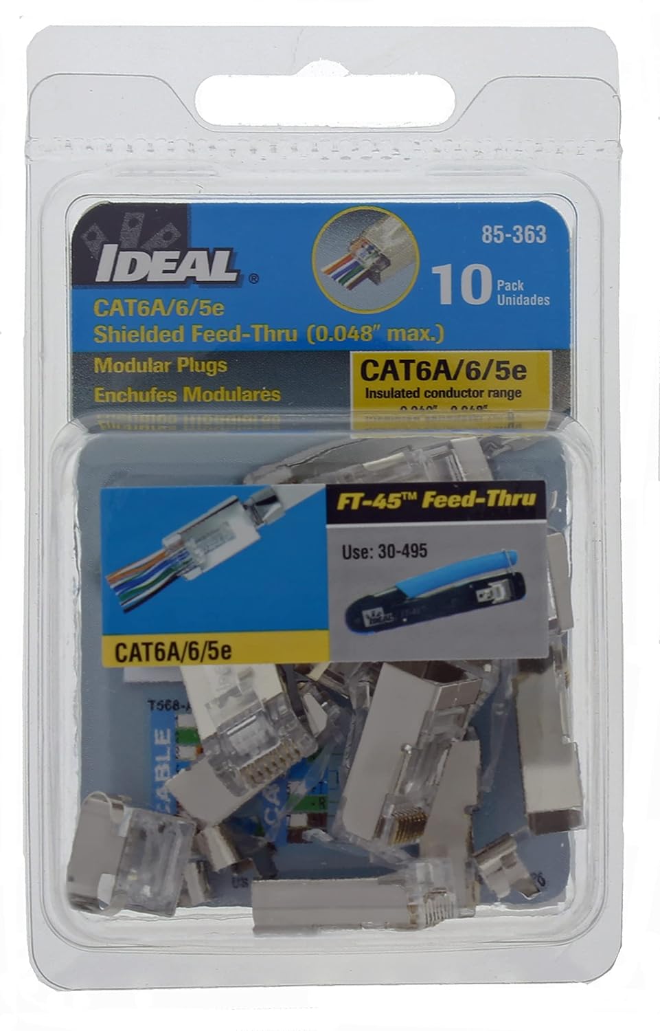Ideal Electrical 85-363 Shielded Feed-Thru Modular Plug Connector, Cable Connector for CAT6A/6/5e Shielded Cables, (10 Connectors)