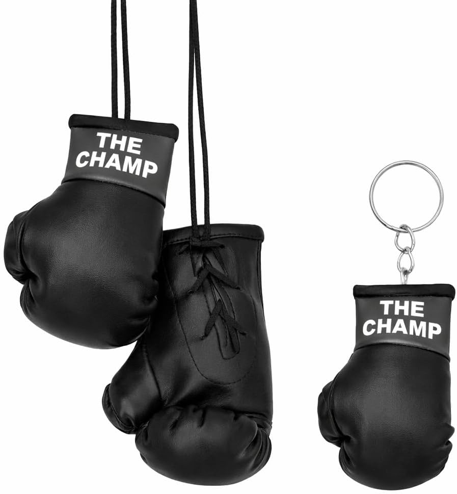 Mini boxing gloves - can be hung on car mirror. Also includes one boxing glove key chain.